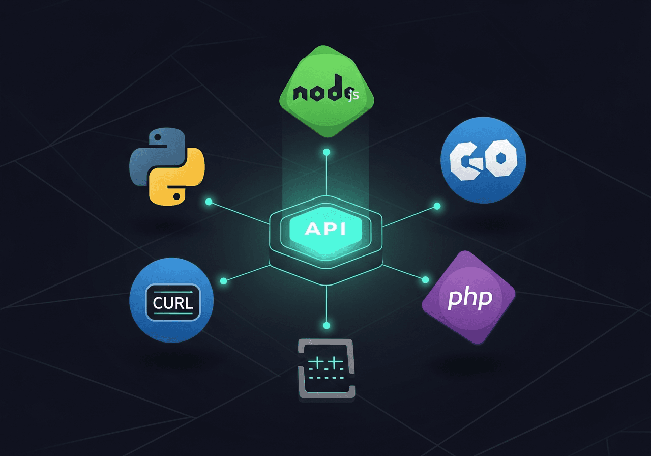One REST endpoint, any language. Ready-to-use examples for Node.js, Python, PHP, Go, and cURL.